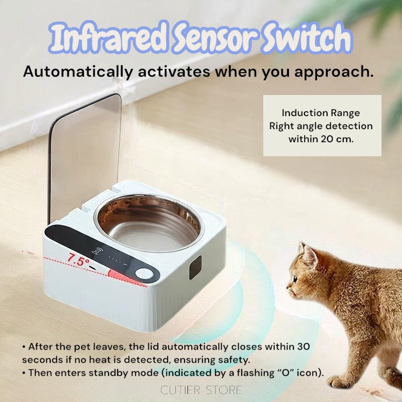 Automatic Pet Bowl — The smart, hygienic feeding solution for your furry friend! Featuring an automatic open-and-close lid, this pet bowl keeps food fresh, prevents dust, insects, and bacteria from contaminating your pet’s meals. Easy to use and perfect for busy pet parents who want to keep their pets’ feeding area clean and safe.