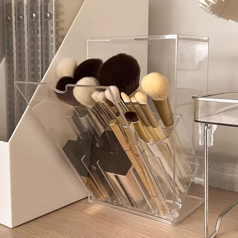 Organize your makeup brushes with our Makeup Brush Storage. Our large capacity tube features compartments for easy sorting and allows for precise placement of eyeshadow, foundation, and eyebrow brushes. Made of acrylic, it's both functional and stylish. Perfect for any makeup enthusiast or professional.