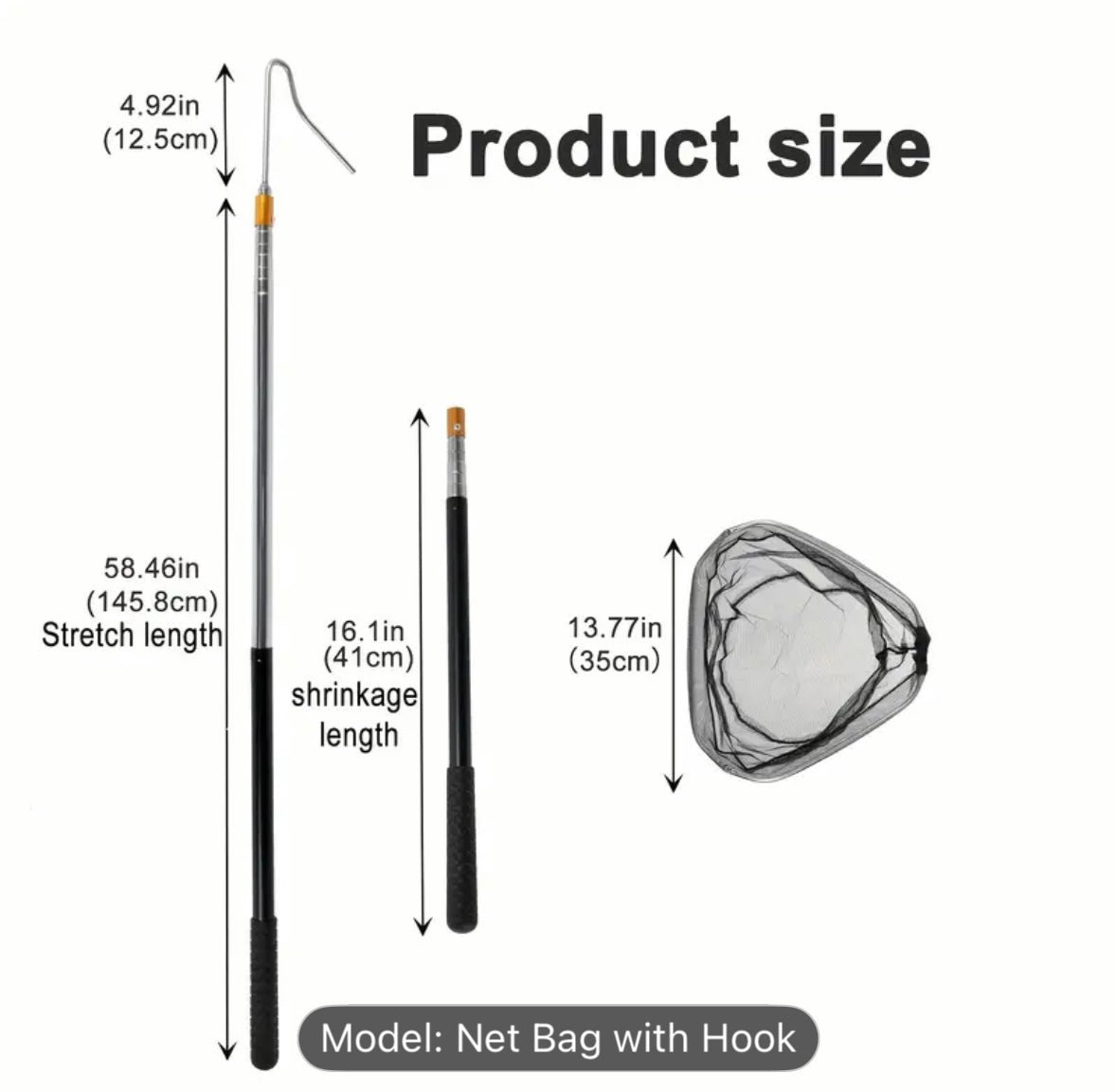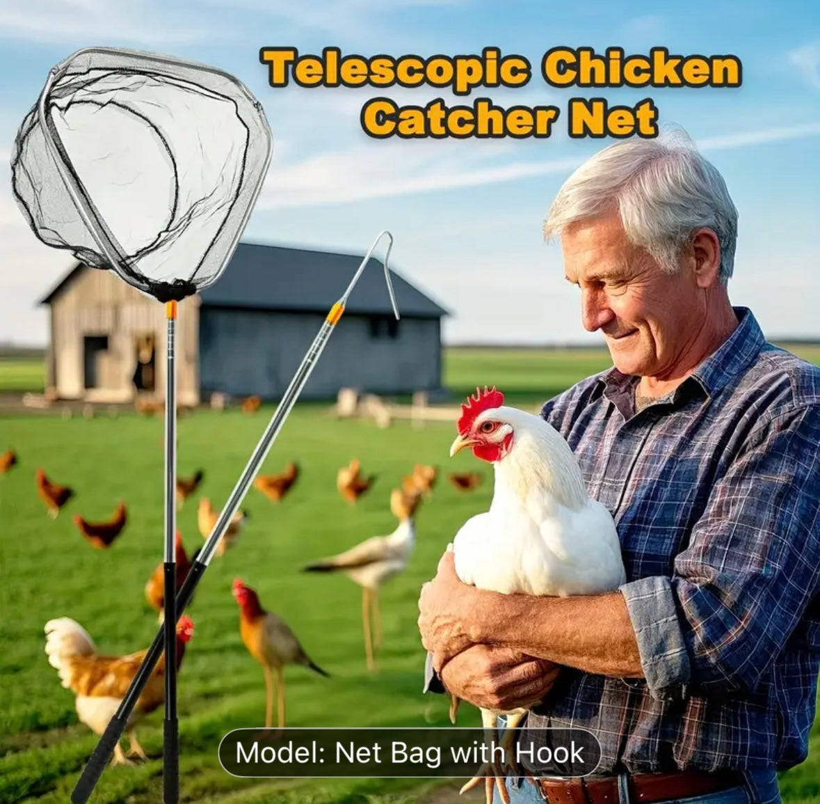 Easily and safely capture small animals with this durable animal catch net with hook. Featuring a strong telescopic handle and high-quality net bag, it is perfect for catching cats, chickens, rabbits, ducks, fish, raccoons, and other small pets or farm animals. Designed for animal control, farm use, wildlife rescue, and pet handling, this net ensures comfort and safety for both handler and animal. Portable, lightweight, and built to last – an essential tool for farmers, pet owners, and animal rescuers.
