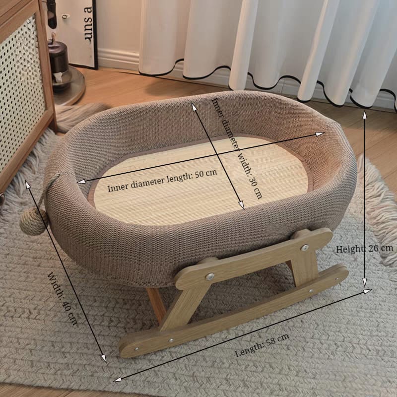 Treat your feline to the finest in lounging luxury with our Luxury Bamboo Rocking Cat Bed Sofa, featuring a cool-mat base and elegant rocking design. Crafted to perfection, this exquisite pet bed blends stylish aesthetics with thoughtful functionality, creating a sanctuary that not only looks chic but also keeps your kitty comfortably cool.