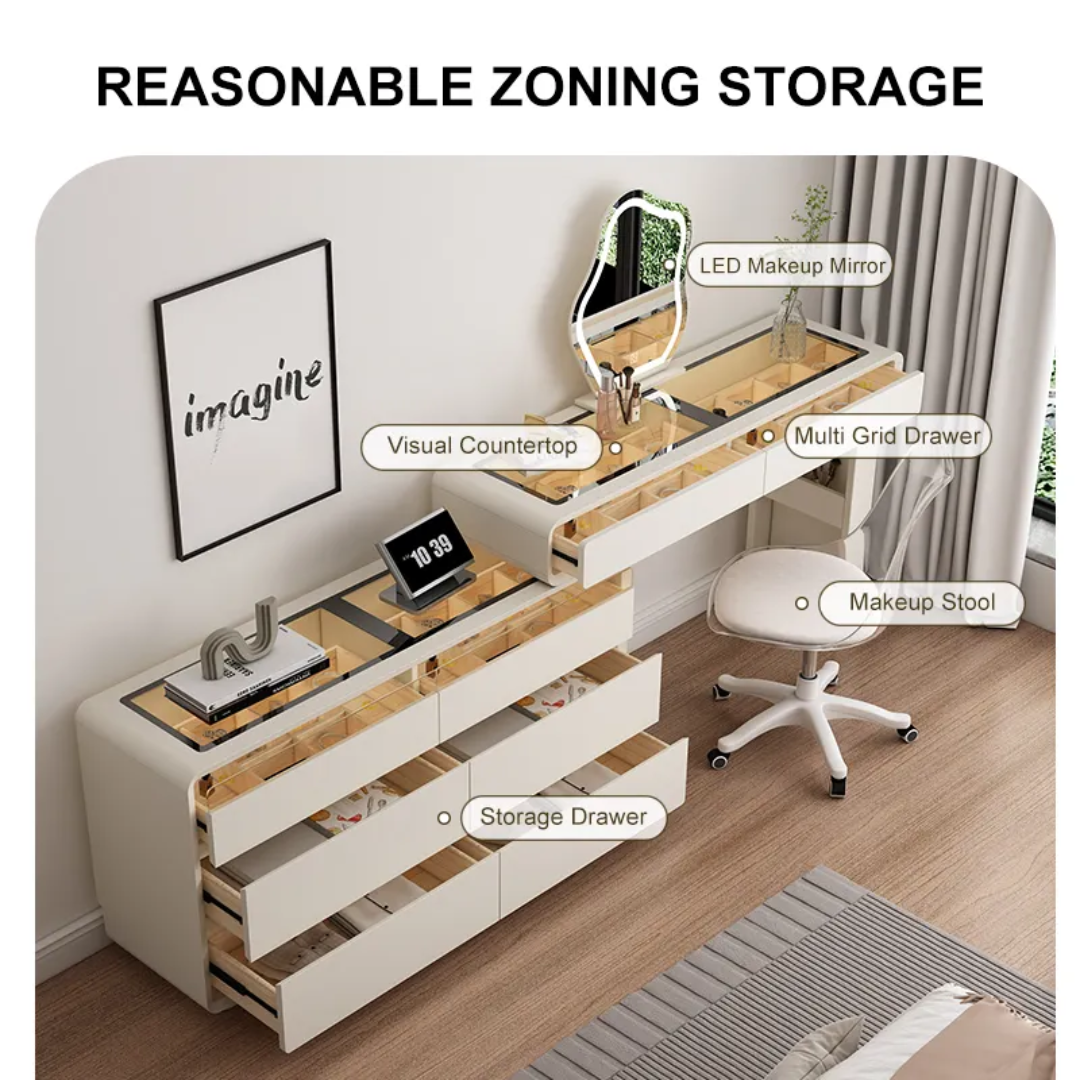 This luxurious dressing table is a French import that features elegant design and high-quality craftsmanship. With its spacious table top and multiple storage compartments, it provides both functionality and style. Perfect for adding a touch of sophistication to any bedroom or dressing area. Check it out on Cutier Store.